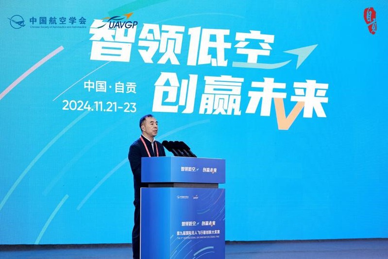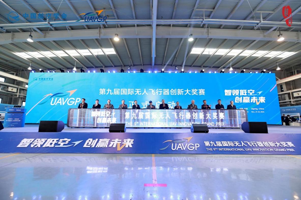 开幕式上,国际宇航科学院院士杨俊华向贡井区授“中国航空学会专家服务站”牌匾。随着中国航空学会监事长李春宏、中国科学院院士闫楚良、国际宇航科学院院士杨俊华等13位嘉宾共同按下按钮启动大奖赛,第九届国际无人飞行器创新大奖赛正式拉开帷幕。