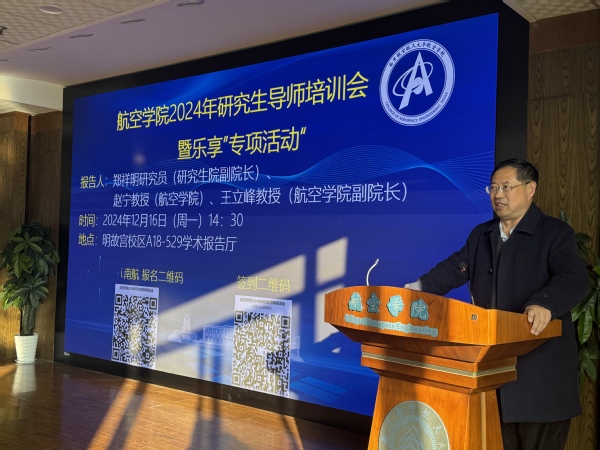 2024年12月16日下午,Betway体育西汉姆联举行了2024年度研究生导师培训会,研究生院副院长郑祥明研究员、Betway体育西汉姆联副院长王立峰教授、空气动力学系赵宁教授、新上岗的导师以及教学办相关人员等40余人参加了此次培训会。会议由王立峰主持。