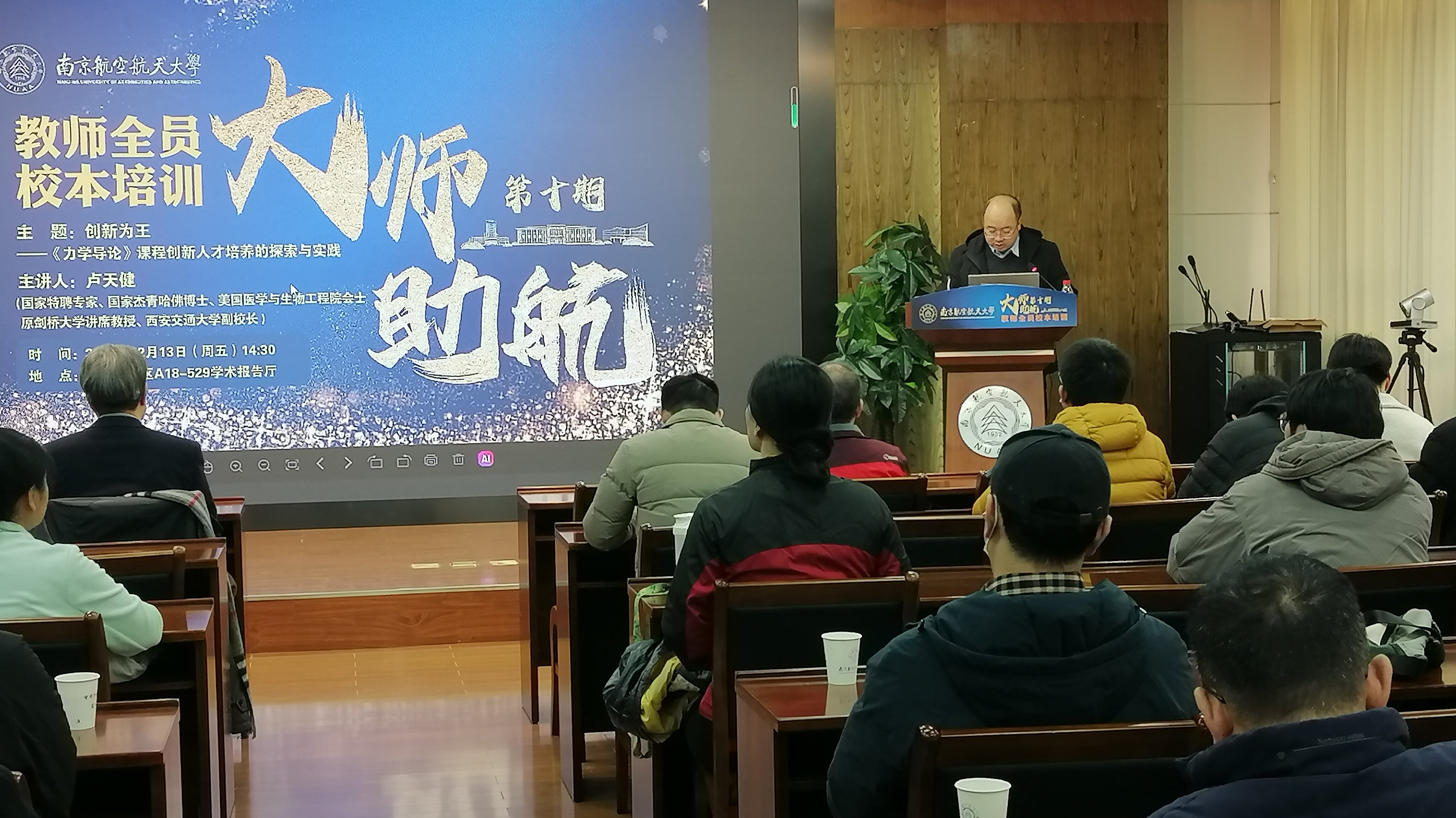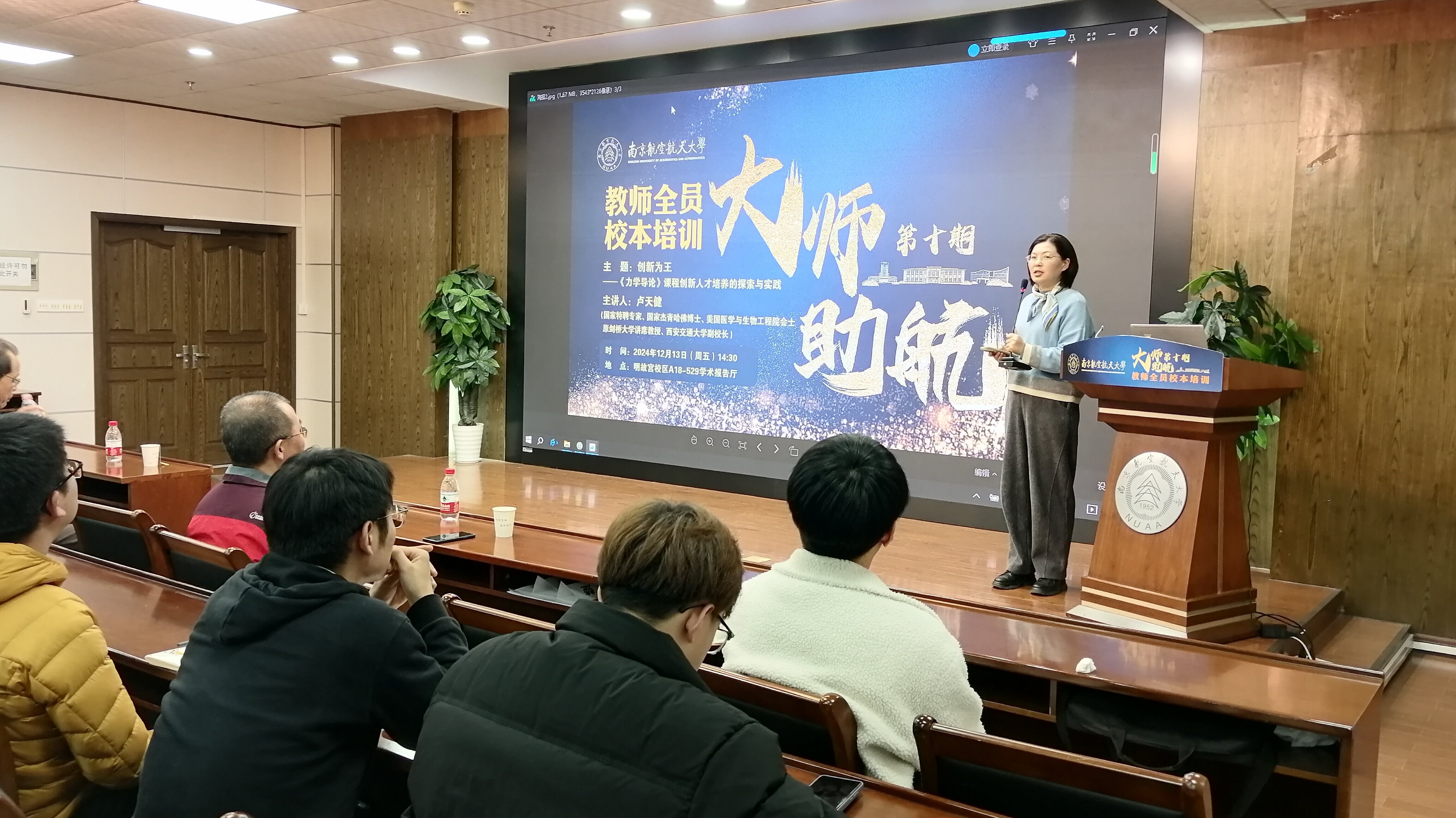 此外,卢老师还指出,大学教师从事的是太阳底下最光辉的事业,除了传承知识,还应传承伟大的中华文明和文化,培养造就德才兼备、高度文化自信的一流拔尖人才,并分享了他以身作则给学生写春联、教学生进行书画创作、分享健康养生技巧等事迹。