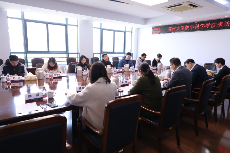 2025年2月28日上午,苏州大学数学科学学院逢成华书记一行来我院调研交流。座谈会在明故宫校区A18-511会议室举行,双方围绕科研合作、人才培养、文化建设等主题展开深入探讨,共话合作发展新篇。苏州大学数学科学学院党委书记逢成华,党委副书记、副院长蒋青芳,我院党委书记卜建,党委副书记韩楚,副院长董昊,及两院师生代表共同参会。