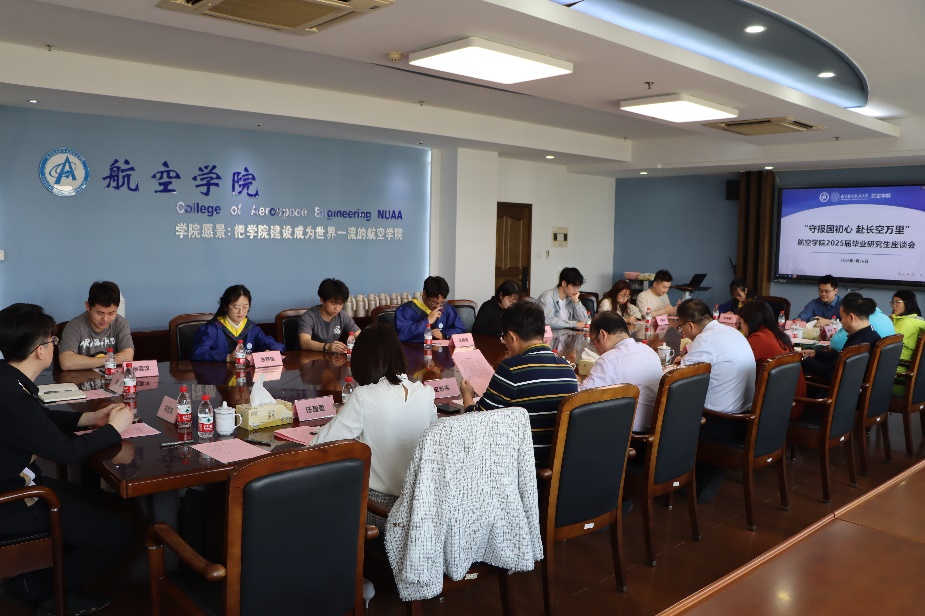此次座谈会既是毕业季的温情告别,更是航空报国精神的赓续和传承。2025届毕业生将带着师长的嘱托、同窗的祝福奔赴国防事业一线,以青春热血践行"砺志奋进,追梦蓝天"的院训精神,成为堪当民族复兴重任的时代新人,以蓝天为卷,以奋斗为笔,书写南航航空人无愧于时代的答卷!