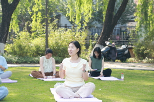 春日的校园里,阳光温柔地洒落,草坪如茵似毯。20名研究生在现场工作人员的指引下,陆续领取了蒸汽眼罩、体验卡、瑜伽垫等活动用品,准备开启一场心灵探索之旅。