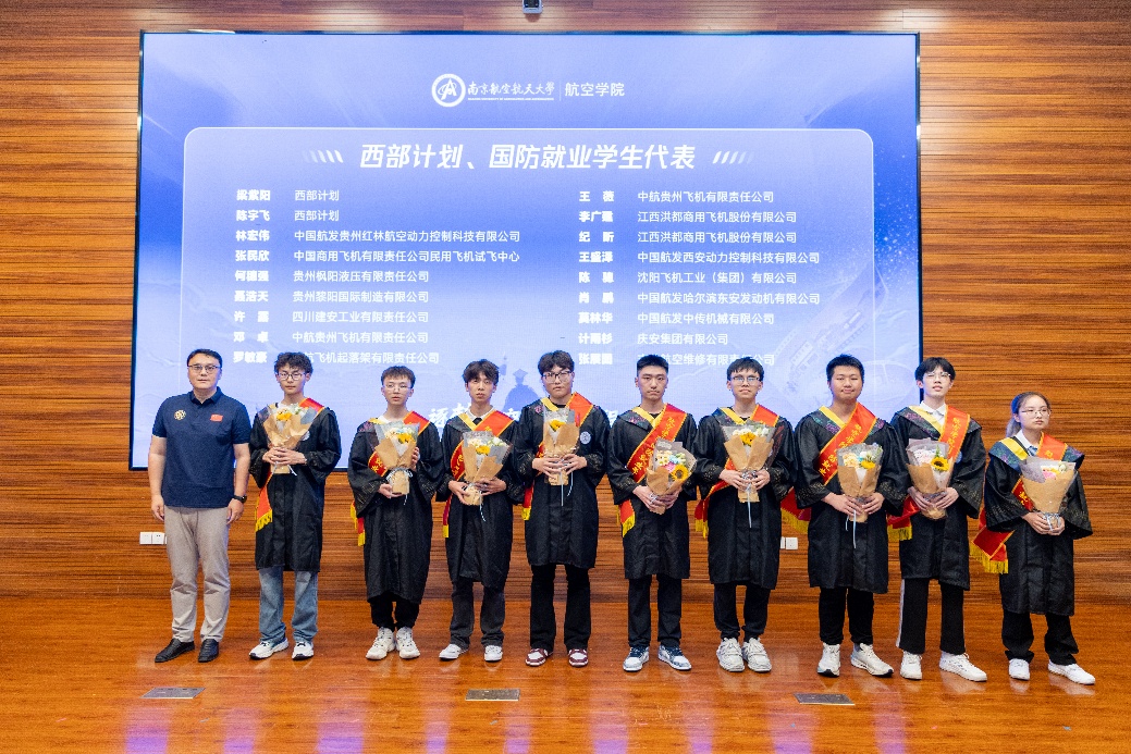 董昊为西部计划、国防就业毕业生代表颁发绶带。从将军路的课堂奔赴西部的山原田野,从明故宫的实验室奔赴国防的一线阵地,Betway体育西汉姆联的毕业生们将“航空报国”的南航基因刻进行囊,用选择写下“强国有我”的青春注脚。