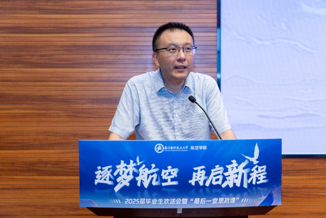 卜建代表学院向全体毕业生表示热烈的祝贺,向辛勤耕耘、无私奉献的老师、家长们表示崇高的敬意和衷心的感谢。他寄语同学们,终保持对家庭幸福生活的追求,仰望星空追逐理想,脚踏实地爱己爱人;始终以健康的体魄、愉悦的心情和昂扬的斗志,直面工程难题,永攀科研高峰;始终牢记“为中华之崛起而读书”,充分发扬“航空报国”的优秀传统,把个人的理想追求融入党和国家事业之中,为党、为祖国、为人民多作贡献。