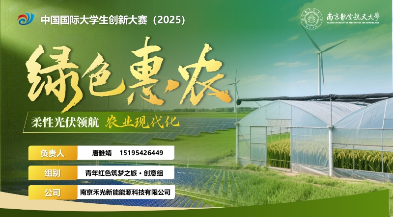 由张助华、赵晓明、聂日明、柯世堂、薛敏珉老师指导,唐雅婧、李佳浚、刘学政、张家怡同学共同完成的《绿色惠农——柔性光伏构建乡村生产新模式》项目获红旅赛道创意组二等奖。