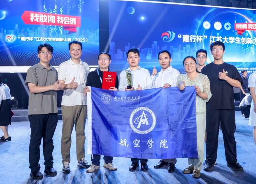 由孙加亮、韦正涛、柯世堂、金栋平、陈卫东老师指导,段权宸、侯捷、汤传旭、罗自搏、刘雍勋、曹诚鸣、蔡正政、杜浩、计缘、丁鼎峰、邓迪文、季乐雅同学共同完成的《智能星衣——空间卫星柔性防护技术》项目获产业赛道(企业命题组产教协同创新组)一等奖。