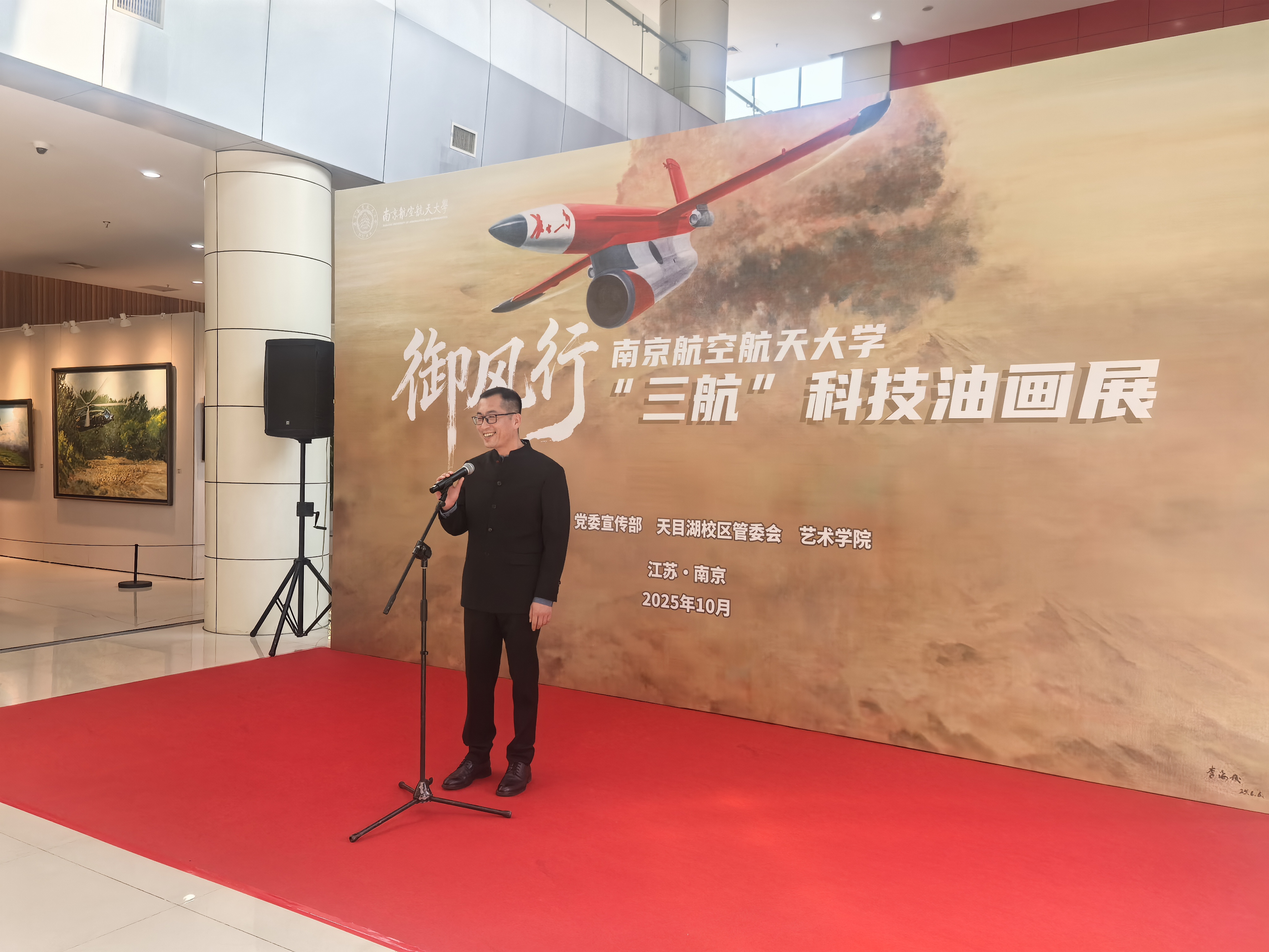 画展以科技与艺术的融合为主题,展出了一系列由画家李海俊描绘40余幅我国三航事业辉煌成就与宏伟蓝图的油画作品,其中包括为我校专门创作的《长空一号》、《王适存先生像》等一系列反映南航航空成就的代表性画作。