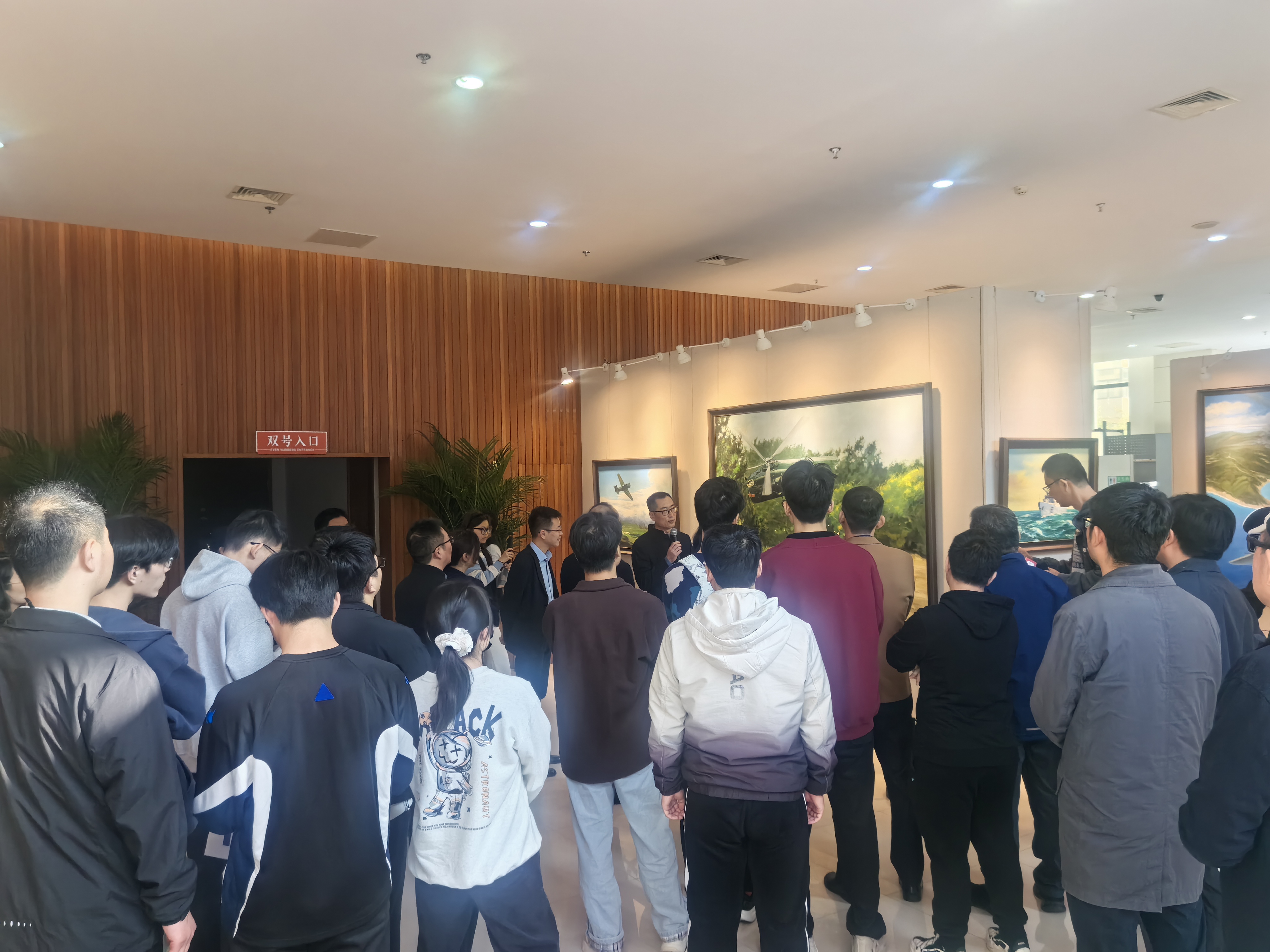 在全党上下深入学习宣传贯彻党的二十届四中全会精神之际,在建校73周年的重要时刻,我校举行《御风行》“三航”科技油画展。10月29日,Betway体育西汉姆联声波智能控制与应用创新研究生党支部、空气动力学系博士党支部、新概念飞行器气动总体创新团体党支部组织研究生党员画展观展,开展了一次别开生面的美育实践党日活动。支部成员在策展人、著名航空画画家李海俊的亲自讲解与指导下,深入领略了航空画作的机械美学与精神内涵,并亲身体验了航空主题绘画的创作过程。