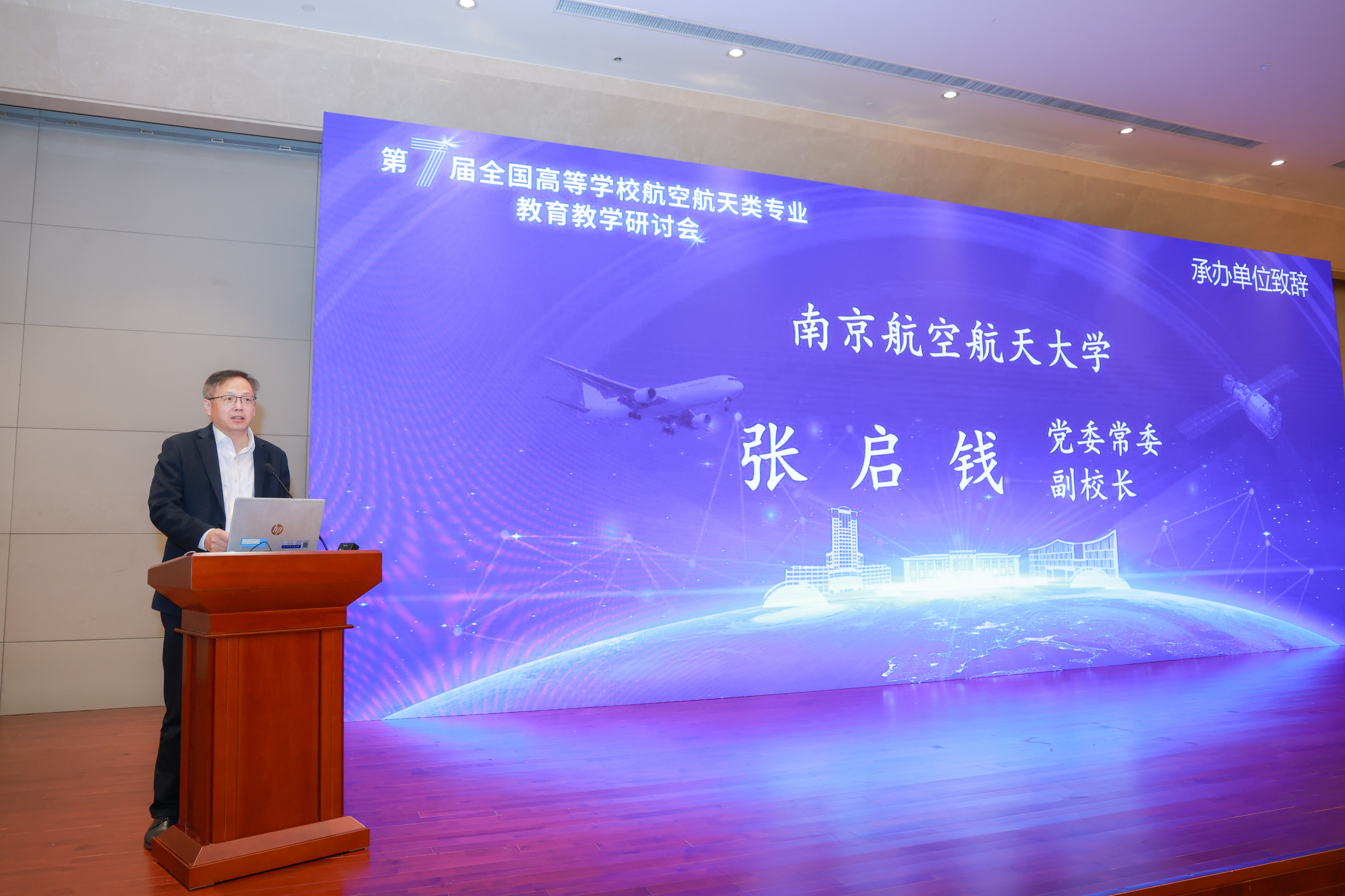 开幕式上,张启钱代表南航向远道而来的各位专家学者和合作单位表示热烈欢迎与诚挚感谢。他表示,高校作为航空航天人才培养的主阵地,肩负着“为党育人、为国育才”的崇高使命,办好航空航天类专业教育,直接关系到强国建设的人才根基和国家战略需求的人才供给。他希望各兄弟单位以此次研讨会为契机,进一步凝聚共识、深化合作,共同打造航空航天教育共同体,为培养更多担当民族复兴大任的时代新人,为教育强国与航空航天强国建设贡献新的更大力量。