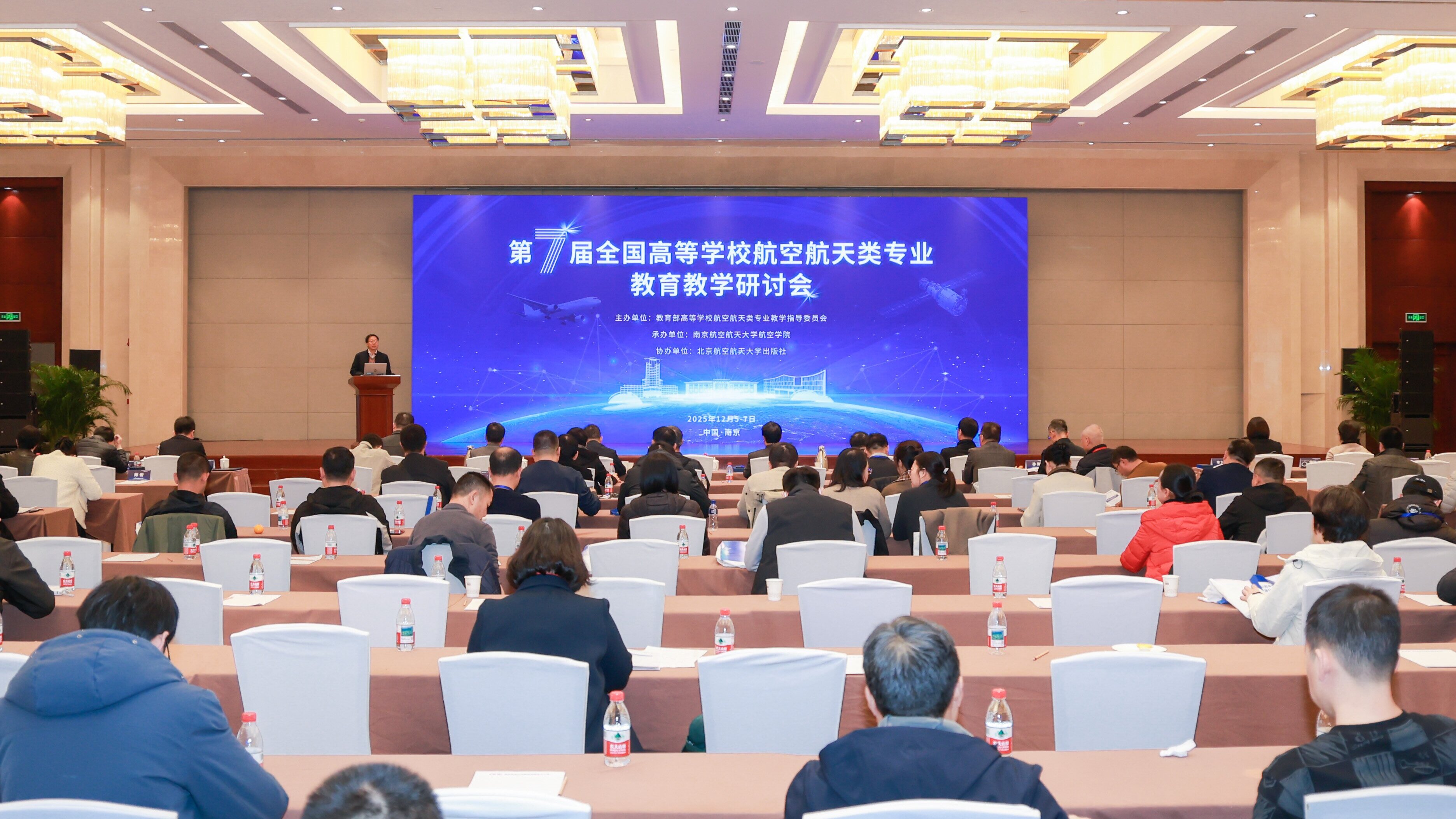 2025年12月5日至7日,第七届全国高等学校航空航天类专业教育教学研讨会在江苏南京顺利举行。会议由教育部高等学校航空航天类专业教学指导委员会主办、Betway体育西汉姆联承办、北京航空航天大学出版社协办。航空航天类专业教学指导委员会主任委员蔡国飙、秘书长梁国柱、其他部分委员、必威西汉姆联党委常委、副校长张启钱等来自清华大学、北京航空航天大学、北京理工大学、国防科技大学、哈尔滨工业大学、海军航空大学等48个航空航天类专业院校的200余名高校一线教师及专家学者齐聚南京,共同探讨航空航天类专业教育教学改革与研究和内涵式发展方向。
