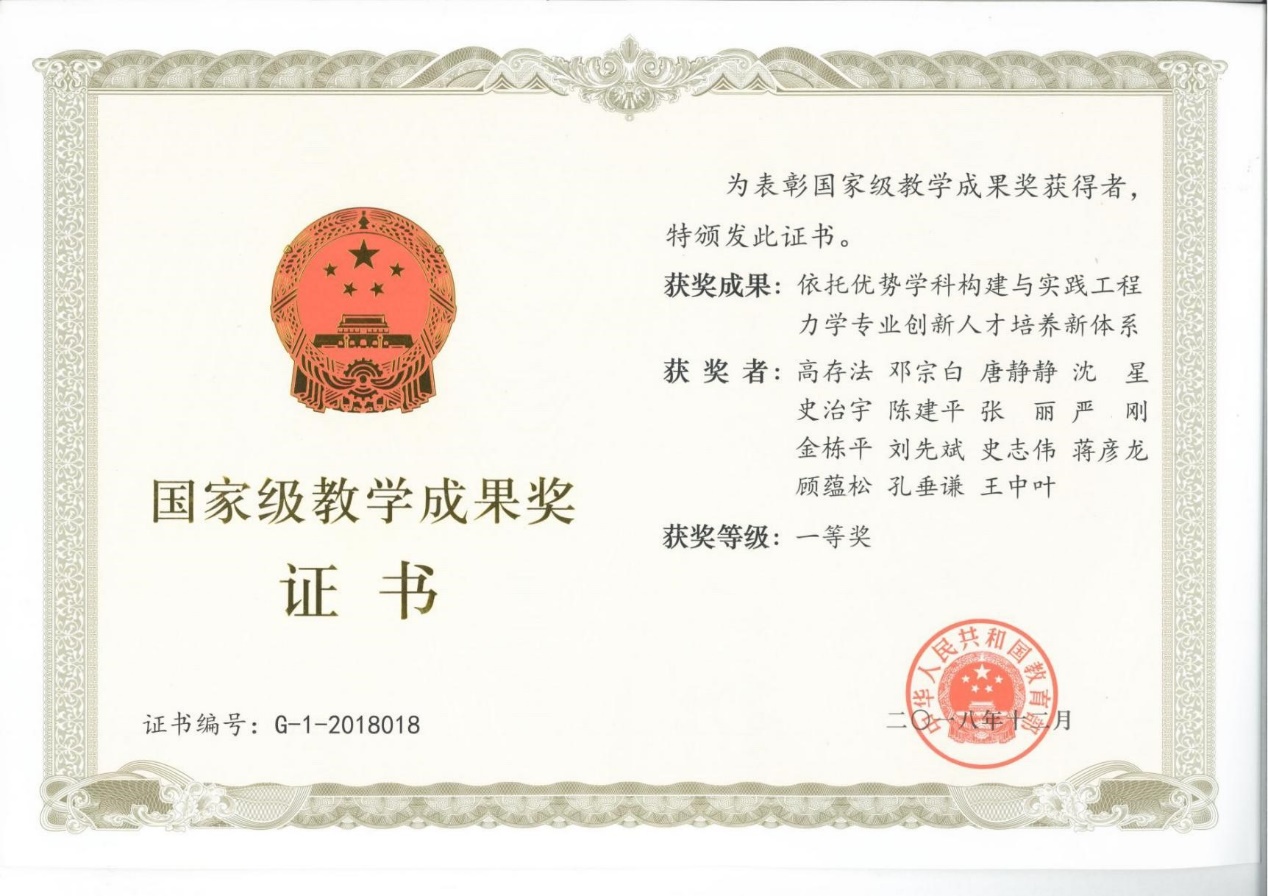 本系所为教育部黄大年式教师团队牵头建设单位,也是航空航天结构力学及控制全国重点实验室、国家工科基础课程(力学)教学基地、教育部基础学科(力学)拔尖学生培养计划2.0等国家级教育教学及科研平台,为高质量人才培养奠定了坚实的基础。系所培养了大批高层次人才,获力学学科全国优秀博士学位论文1篇,国家级教学成果一等奖、江苏省教学成果特等奖各一项。